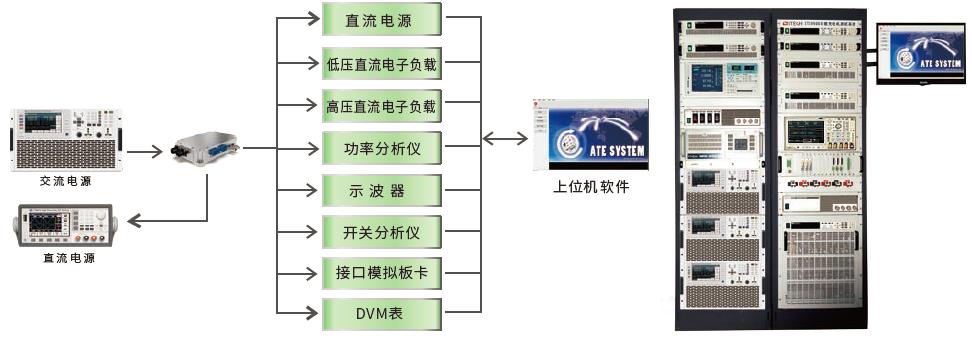 艾德克斯車載充電機測試方案的配置,硬件方面有電子負載模擬電池放電,AC電源模擬電網給充電機供電,搭配示波器和功率分析儀等設備,和專業的上位機軟件,對車載充電機進行完整的測試